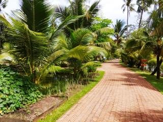 • 연못과 코코넛 나무 정원: 연꽃이 흐드러진 연못과 초가집이 낭만적 분위기를 자아냅니다